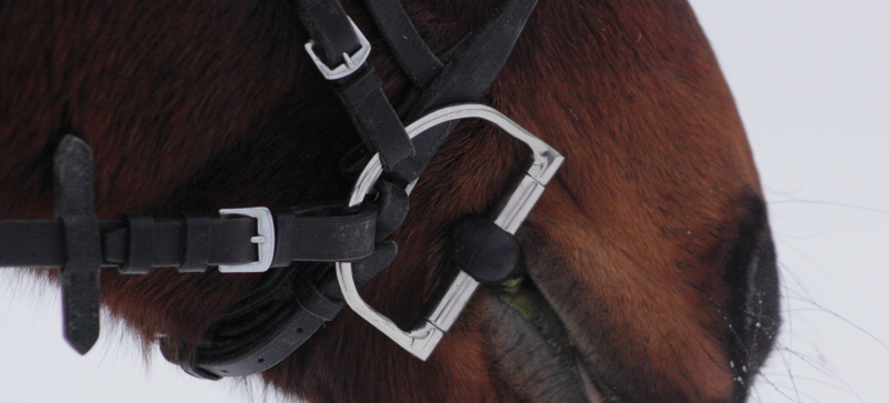 Olen jo jonkin aikaa miettinyt toisia kuolaimia metallisten (ja tähän vuodenaikaan ihan kammottavan kylmien) kolmipalojen tilalle ja eilen sellaiset löytyivät. Itse en ole kovin suuri nivelien ystävä, mutten vielä ole keksinyt yhtäkään hyvää syytä sille, joten kumipäälysteiset nivelet ovat oikein tervetulleet ja varmasti kylmiä metallikuolaimia mielyttävämmät. Ne pääsivät testikäyttöön tänään ja Sotilas vaikutti ihan tyytyväiseltä. Siitä taitaa löytyä jarrut oikeastaan millä tahansa kuolaimilla eikä pehmeiden kuolainten välillä taida olla kovin suurta käyttöeroa ratsastajan kannalta. (Haha, se näyttää hukkuvan noihin valtavan suuriin D-renkaisiin..)