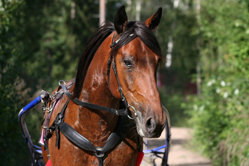 Tullessaan etenkin satulointi oli Sotilaalle vähän vaikea tilanne. Se pyöri käytävällä eikä rauhoittunut aloilleen. Selkään noustessa sählääminen paheni vielä lisää eikä selkään kiipeämisestä meinannut yksin tulla mitään. Valjastaessa ei hievahtanutkaan. Sen verran ollaan ehditty puuhailla, että nykyään satulointi onnistuu samaan tyyliin ja vaikka paljaaseenkin selkään pääsee kivasti ilman apua, vähän päivästä riippuen. Vaikka ratsastelu sujuu nykyisin vaivatta niin ratsastajalta kuin hevoseltakin, tuntuu siltä, että kärryjen ja valjaiden kanssa puuhastelu on molemmille se oma homma. Ja hyvä niin.
