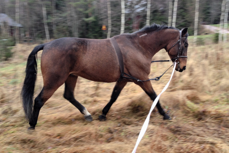 Ihan pikapikapikainen postaus ettei väli venähdä ihan mahdottoman pitkäksi.. Sotilaalle kuuluu pääasiassa sivuohjia ja liinapuuhia. Se tuntuu viihtyvän sivuohjien kanssa ihan hyvin ja touhuun on tullut taas se sama keskittyminen mukaan joka keväällä kadotettiin. Oikeastaan odotan jo innolla, että päästään tekemään samaa lumihankeen! Sotilas kadotti toisen etukenkänsä jo jokin aika sitten jonnekin ja olen miettinyt millä repisin irti loputkin. Ollaan sitten ilman kenkiä hetki. Hokkikenkiin on niin lyhyt matka, ettei kolmen kuukauden kengitysvälin hevosta kannata laittaa enää kesäkenkään..