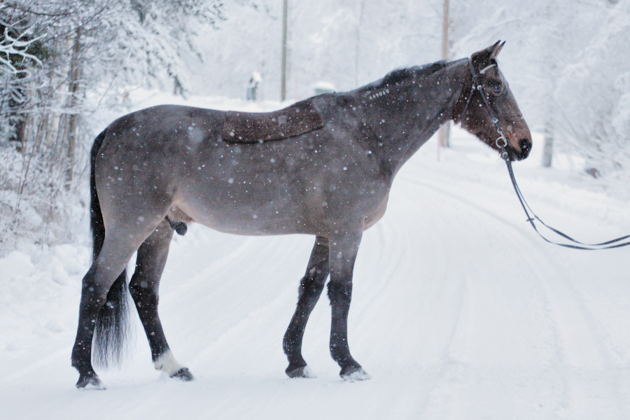 Harmi että mahtava talvimaisema kulahtaa pois jo muutaman päivän päästä. Ainakaan vielä talvi ei tunnu yhtään kurjalta jutulta! Lunta alkaa olla ihan sopivasti eikä muutaman asteen pikkupakkanen tunnu yhtään pahalta. Sotilaskin ulkoili klippauksen jälkeen illan ilman loimea palelematta. Yöt se viettää ehdottomasti talvitakissa, mutta päivisin se voi varmasti ulkoilla jonkin verran nakunakin. Ainakin piehtaroiminen tuntui olevan mieluisaa! Huomenna voisi olla juoksuttelupäivä ja parhaassa tapauksessa saatte vähän videotakin mikäli saan suostuteltua/lahjottua/pakotettua pikkusysterin mukaan heppailemaan.