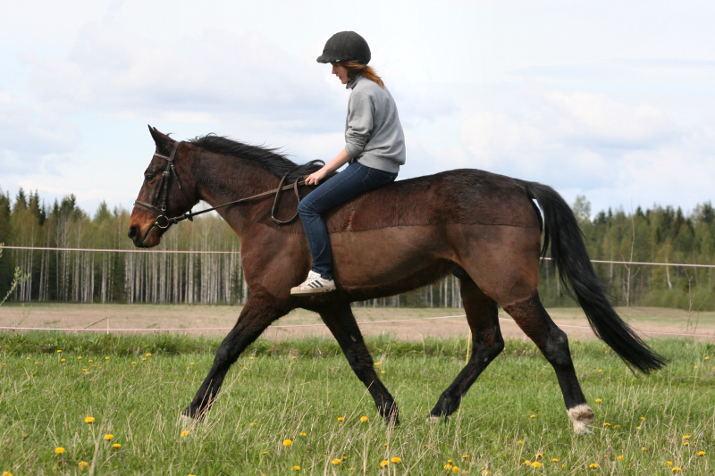 Käytiin tänään pitkästä aikaa ajelulla! Voi miten hyvä hevonen voi olla ajaa. Lenkkeiltiin (toisenkin täydellisen miehen seurassa) kymmenisen kilometriä ja Sotilaskin sai kevyen hien pintaan. Sen liikuttaminen kunnolla on edelleen työn ja tuskan takana. Ratsastaessa oma kuntoni loppuu kauan ennen kuin hevonen vaikuttaa liikkuneen yhtään ja ajellakin saa ihan jokusen kilometrin ennen pienintäkään hikeä. Toisaalta etenkin selästä käsin liikuttamisen kanssa on useita muitakin haasteita.. Pennun kanssa tuntui aluksi ihan samalta - en ikinä opi ratsastamaan tällä hevosella, mikä on erilainen kuin edellinen. Ennen Pentua ratsastin paljon pienellä ja liikkeissään kovin erilaista tinkertammaa ja sen jälkeen siirtyminen "ison" hevosen selkään oli shokki. Nyt takana on pitkä tauko säännöllisestä ratsastamisesta ja Sotilas on ihan erilainen kuin Pentu, jota sitten loppujen lopuksi kuitenkin opin ratsastamaan.