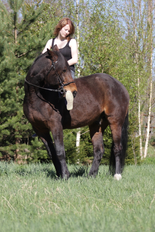 Melkoisesti laihtunut my little pony. Minne se kaikki ihra on ihan huomaamatta kadonnut? Talven jäljiltä lihaksiakin puuttuu, mutta metsässä rämpiminen ilman satulaa taitaa toimia aika hyvin niin ratsastajalle kuin hevosellekin. Ilman satulaa hölkkäily tosin kostautui ja tänään oli pakko pitää vapaapäivä. Sotilaan selkäranka 1, minun persukseni 0. Sotilas on ollut vaisu viimeisen viikon, mutta eilisellä lenkillä kaikki oli onneksi taas kunnossa.