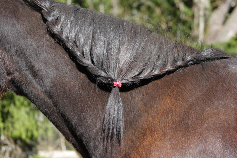 Tästä perheestä löytyy huomattavasti minua näppärämpi letittäjä.. Punaisilla ruseteilla ja sinisellä silkkinauhalla sai aikaan useammankin söpön kampauksen. Sotilas on kärsivällinen ja siinäkin mielessä hyvä kampaustentekoalusta, että harjaa riittää kyllä! Kerrankin koko komeus saatiin pysymään jopa yhdellä puolella kaulaa.. Talvikarva hupenee kovaa vauhtia, mutta väri vaihtelee vielä nopeammin. Toivottavasti jää punaiseksi!