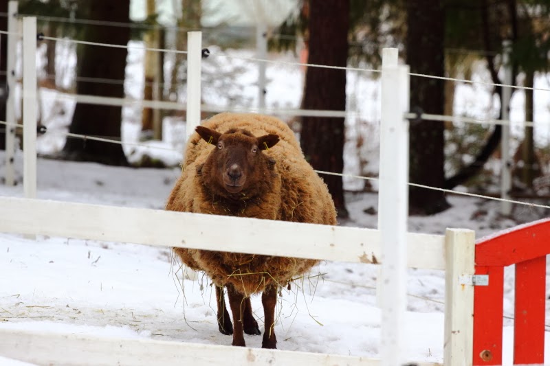 Lampaat ja kaviolliset ovat metkasti laumaantuneet talven aikana. Lampaat viettävät päivänsä omassa tarhassaan vain muutaman sähkököyden takana, joissa ei talvisin sähkö kierrä, joten ne hengailevat aivan hevosten vieressä. (Kesällä lampaat saavat käyttää pihan koko toista puoliskoa, mutta nyt talvella silmitön ralli ympäri liukasta pihaa ei todetusti ole tikkukoiville terveellistä touhua.) Luonnollisesti lampaatkin siis odottavat ja etenkin vaativat palvelua hevosten tapaan neljästi päivässä.. Tullessaan Libby suhtautui lampaisiin vähän nihkeästi (vaikka lammastilalta onkin), mutta nykyään lampaat ovat hyväksytty osa laumaa.