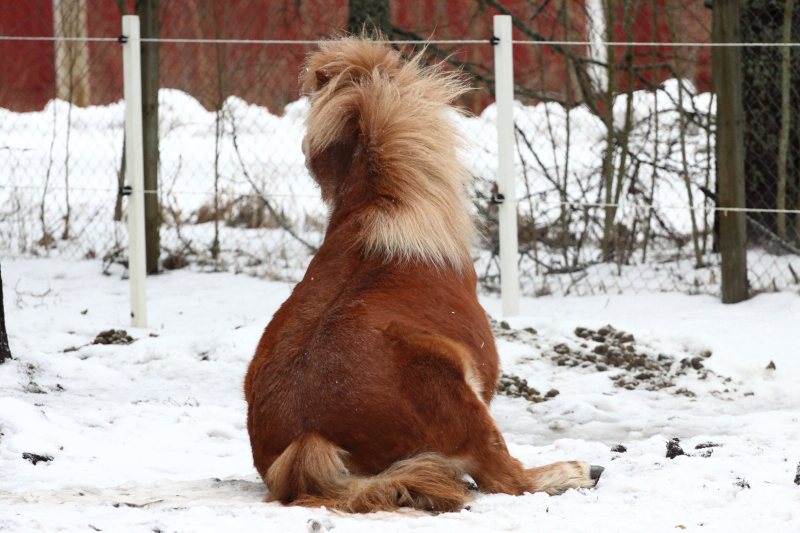 Tällainen meno täällä on joka aamu. Ihan vain viihdearvon vuoksi olen vapaapäivinäni vienyt hevoset ensin ulos ja tuonut heinät perässä (arkena järjestys on päinvastainen). Odotellessaan molemmat piehtaroivat pariin kertaan ja etenkin Sotilaan jalat ovat kovin kevyet. Libbyn tulon jälkeen (josta on muuten puoli vuotta ja puolitoista viikkoa) koko tarha on ollut tasaisesti käytössä. Viime talvena Sotilas teki jokusen polun tarhan poikki aidanviertä kulkevan reitin lisäksi eikä juurikaan liikkunut ulkona, mutta nyt koko tarha on tallottu kulkukelpoiseksi. Liikkuminen ulkona näkyy etenkin Libbyssä, rasva on sulanut pois kaulasta ja pyllyltä. Kaikkein pahimmat terveysriskit on siis liikuttu ja syöty pois. Kylkiluutkin löytyvät, vaikka mahalinjasta voisi päätellä toista.