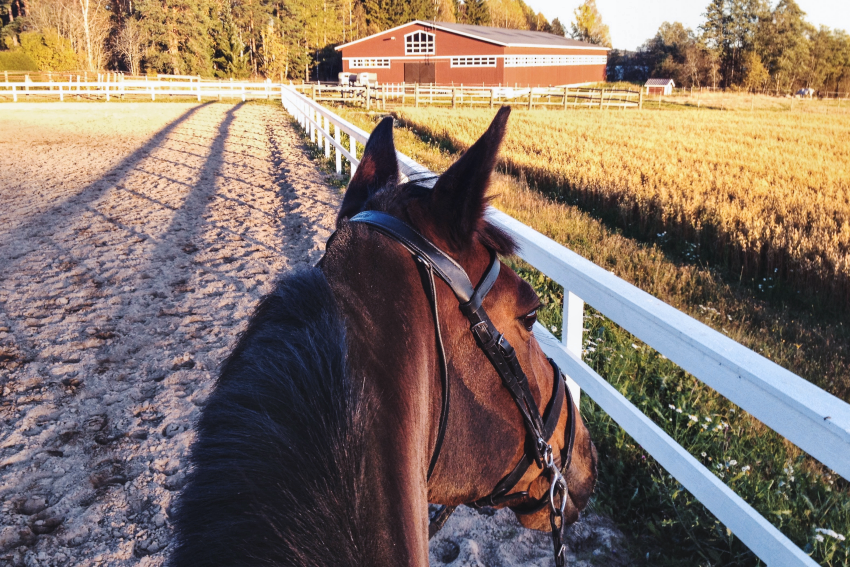 Sotilasta eivät uudet paikat jännitä. Viikko sillä kesti tottua uusiin rutiineihin ja tallikavereihin (etenkin alle puoli vuotta vanhaan pikkuvarsaan), mutta sen jälkeen kaikki on sujunut vanhaan tapaan. Suuren ulkokentän ja maneesin lisäksi rauhallisia maastoreittejä riittää - aina Venäjän rajalle saakka. Tänä syksynä aurinkoa on riittänyt ja tallille ajellessa tuntuu, että on lähtenyt "illaksi maalle". En ihmettele lainkaan, miksi Sotilas vaikuttaisi viihtyvän paremmin kuin hektisellä Hubertuksella.
