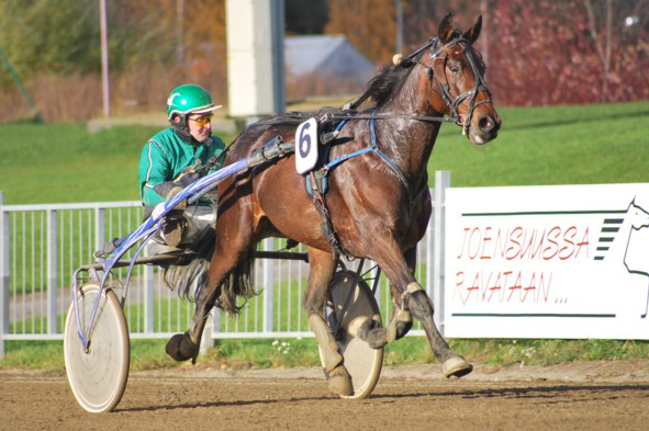 "Runnoi kärkeen viimeisen takasuoran alussa ja pakeni lopussa ylivoimaiseen voittoon." c. Joensuun ravirata