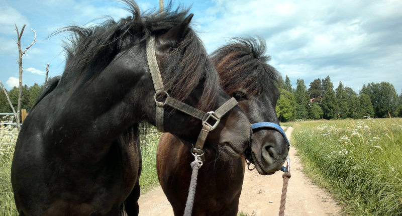 Terveisiä tupsulasta! Vastapainoksi alkuviikon helteille tänään ukkosti ja satoi vettä. (Ilmeisesti joka kesä täytyy kastua läpimäräksi vähintään yhtenä työpäivänä?) Olen avustajana pienten lasten hevosenhoitoleireillä, joten työnkuvaan on kuulunut perusasioiden harjoittelua pääasiassa pikkutytöistä koostuvan ihailtavan innokkaan lauman kanssa. Seuraava leiri alkaa vasta sunnuntaina, joten tänään ohjelmassa oli hevosten liikuttamista, lähinnä juoksuttaen. Olisi ihanaa päästä Sotilaankin kanssa kunnon irtojuoksutusaitaukseen! (Ei sillä ettenkö viihtyisi siellä tupsujalkojenkin kanssa. Makeeta touhua!)