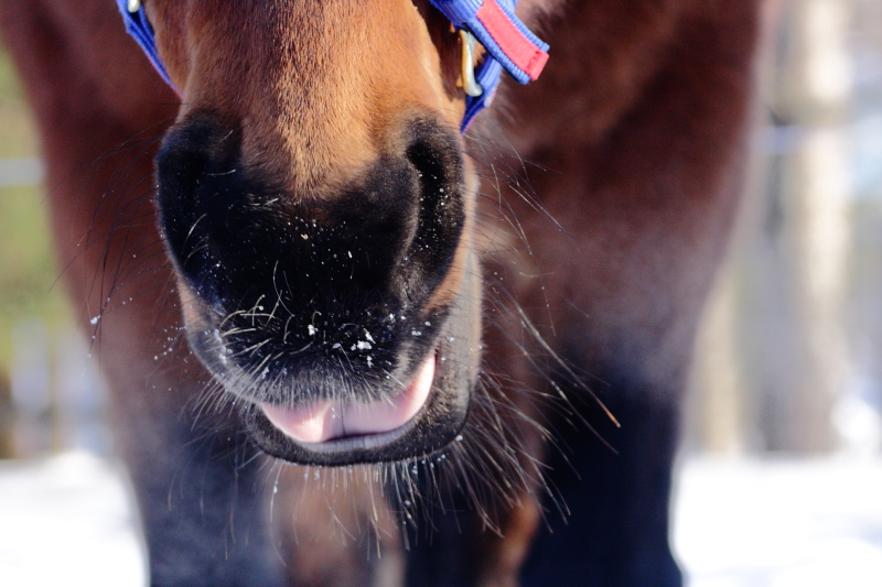 Melkein kevätaurinko paistaa, mutta herätessäni oli -18 ja vielä iltapäivälläkin pakkanen saa hengityksen höyryämään.. :( Etujalkakaan ei oikein tunnu paranevan putsin sisällä niin hyvin kuin toivoisin, joten tänä aamuna otin riskin ja heitin pompulan ulos suojattomana. Vielä toistaiseksi ainakin (KOPKOP) sillä on kaikki jalat alla.. Sen lisäksi hain koulun jälkeen haavasprayn (joskaan en saanut haluamaani violettia), joka toivottavasti auttaa edes vähän. Kauhea miten jokainen pienikin haava stressaa kun niiden hoiteleminen ei enää ole jokapäiväistä. Että puhumattakaan sitten tämän kokoisesta! Satulahuopavalikoimammekin onneksi kasvoi tänään ihanalla tummanharmaa-violetilla huovalla haettuani sen postista. <3